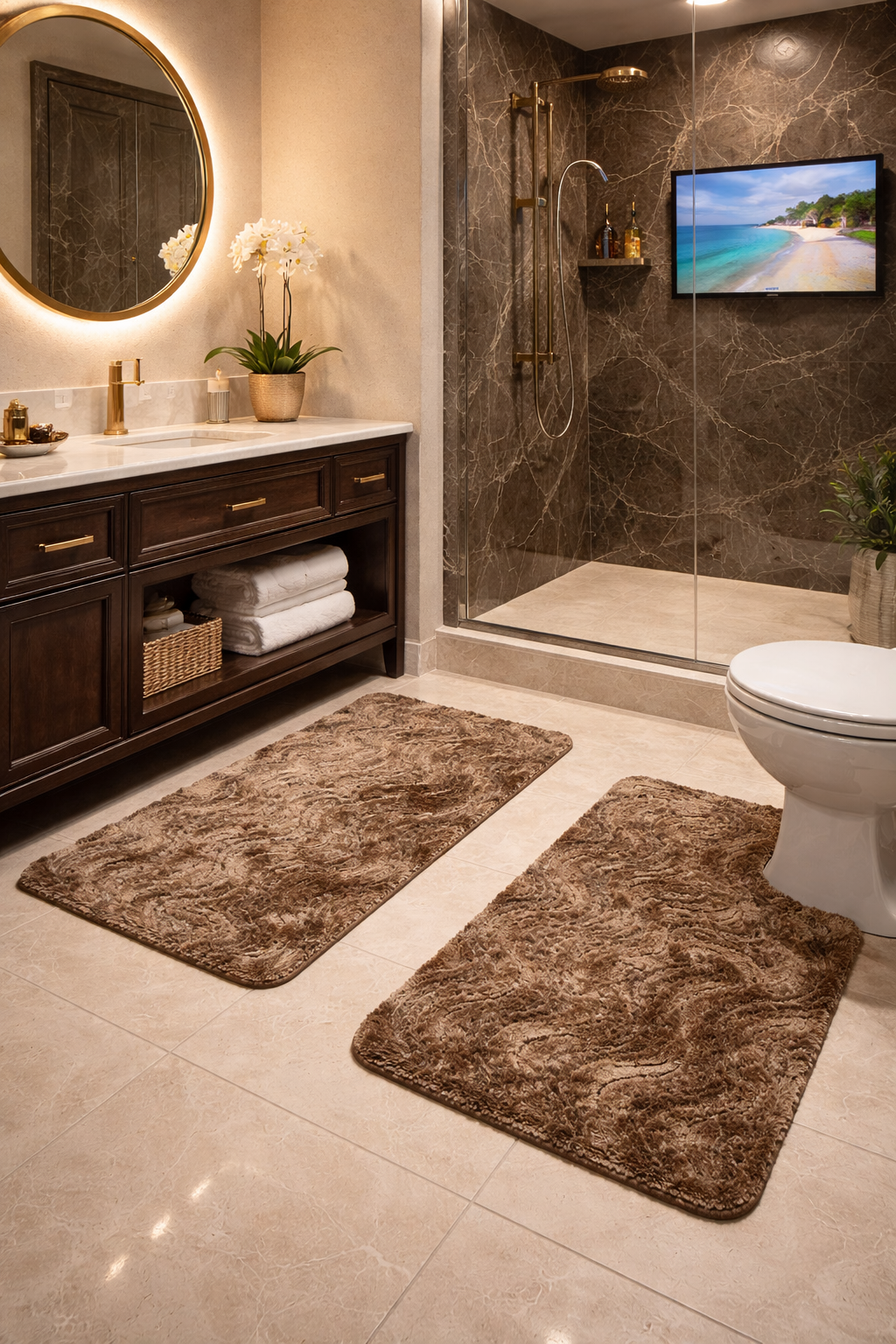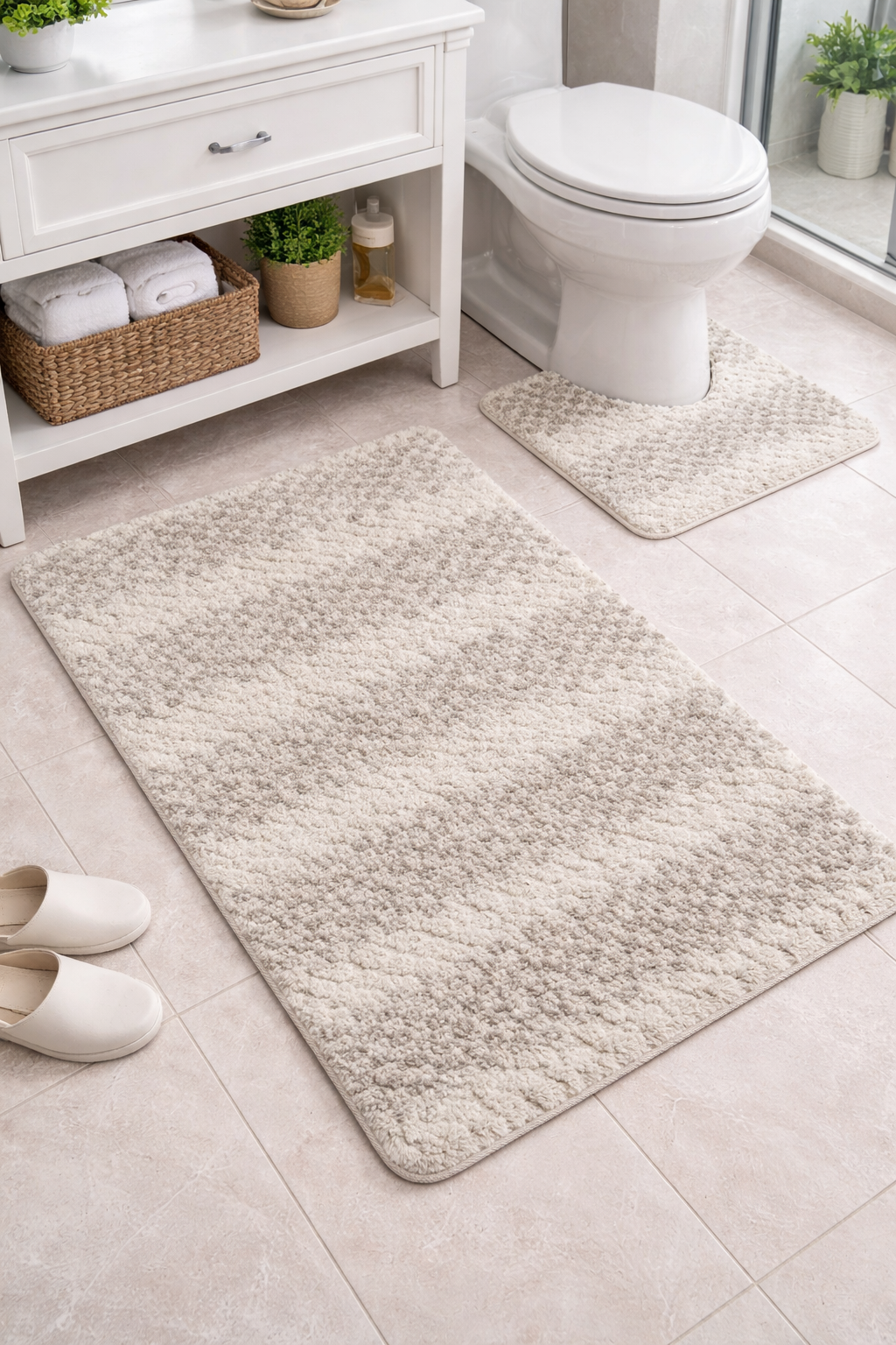 طابي حمّام بجودة عالية مصمّم باش يعطيك الراحة والأمان بعد كل دوش. خامة ناعمة وممتصّة للماء تخلي الأرضية ناشفة ونظيفة، مع قاعدة مضادة للانزلاق لسلامتك.